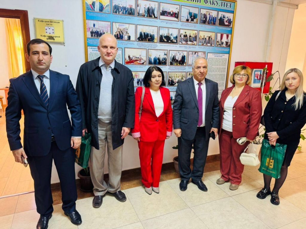 Дар чорчӯбаи сафари корӣ, ки аз 19 то 22 ноябр идома меёбад, меҳмонон бо роҳбарияти воҳидҳои сохтории Донишгоҳ ва устодони факултетҳои марбута (муовини аввал, муовини ректор оид ба таълим Раҷамзода Ф.К., декани факултети муштараки ДМТ бо МТОК Белорус Озиназода С. ва декани факултети физика Қодирзода З.) мулоқот анҷом дода, аз озмоишгоҳҳои таълимӣ ва илмии факултети физика боздид намуданд. Онҳо бо фаъолияти илмӣ, имкониятҳои техникиву лабораторӣ ва самтҳои асосии тадқиқотии кафедраҳо аз наздик шинос гардиданд. Инчунин, бо донишҷӯён мулоқоти судманд анҷом доданд.